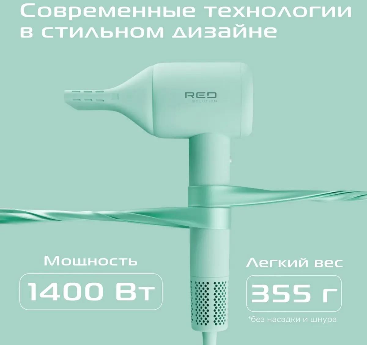 Компактный фен Red solution F572 (1400 Вт /зеленый, мятный) - Интернет-магазин ОЛИМП: бытовая техника, электроника, товары для дома и др.