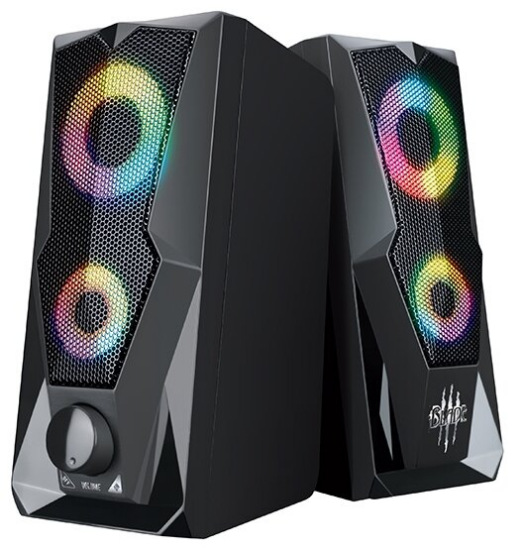 Колонки 2.0 Qumo Blade AS001 при мощности 6 Вт обладают небольшими размерами (17.5x7.8x9.9 см), что позволяет разместить их на компьютерном столе. Корпуса изделий изготовлены из пластика и создают акустическое оформление «закрытый ящик». Диапазон частот звучания динамиков фронтальных колонок диаметром 63 мм варьируется от 160 до 20000 Гц с сопротивлением 30 дБ. К компьютеру устройство подключается за счет USB-порта. Звучание колонок 2.0 Qumo Blade AS001 сопровождается подсветкой. На корпусе колонок располагается регулятор громкости.