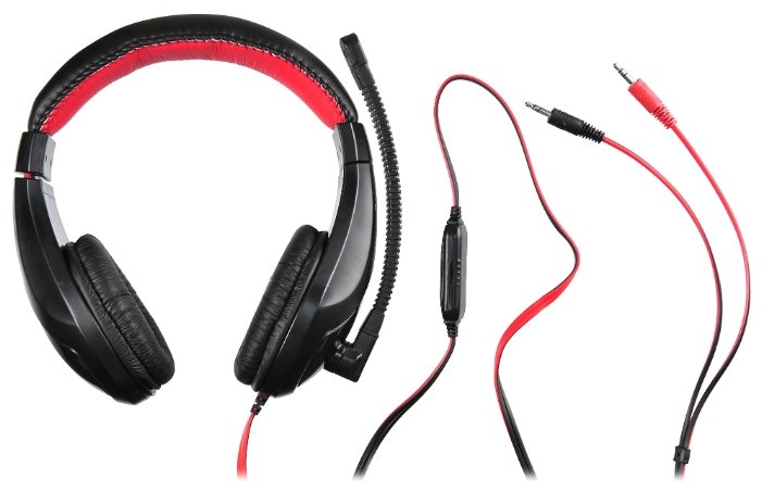 Компьютерная гарнитура Oklick HS-L100 черный/красный (с проводом, полноразмерные)