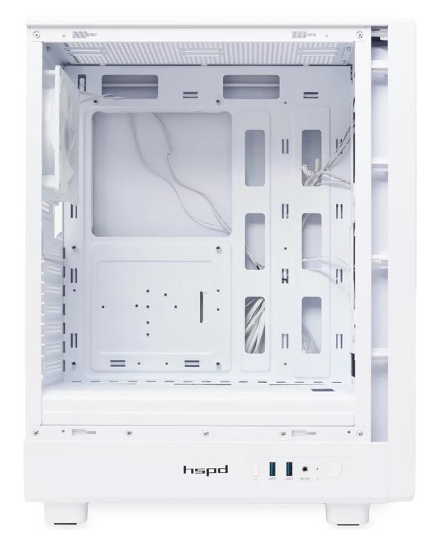 Корпус HSPD M510-TGWH-ARGB White (mATX, ATX, Mini-ITX, белый, без БП)/(M510-TGWH-ARGB)