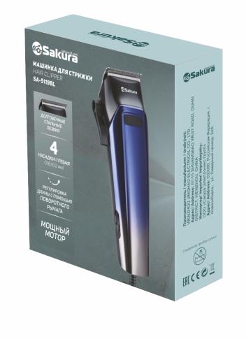 Машинка для стрижки Sakura SA-5119BL, черный, синий - Интернет-магазин ОЛИМП: бытовая техника, электроника, товары для дома и др.