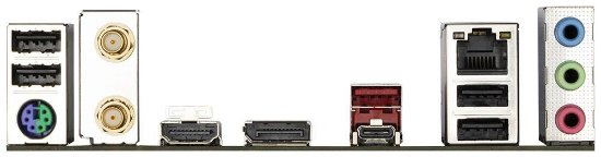 USB 2.0 x4, USB 3.2 Gen2 Type A, USB 3.2 Gen2x2 Type C, DisplayPort, HDMI, SMA (для антенны Wi-Fi) x2, PS/2 (комбинированный)