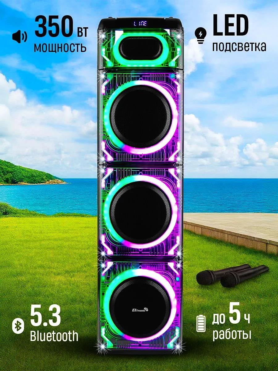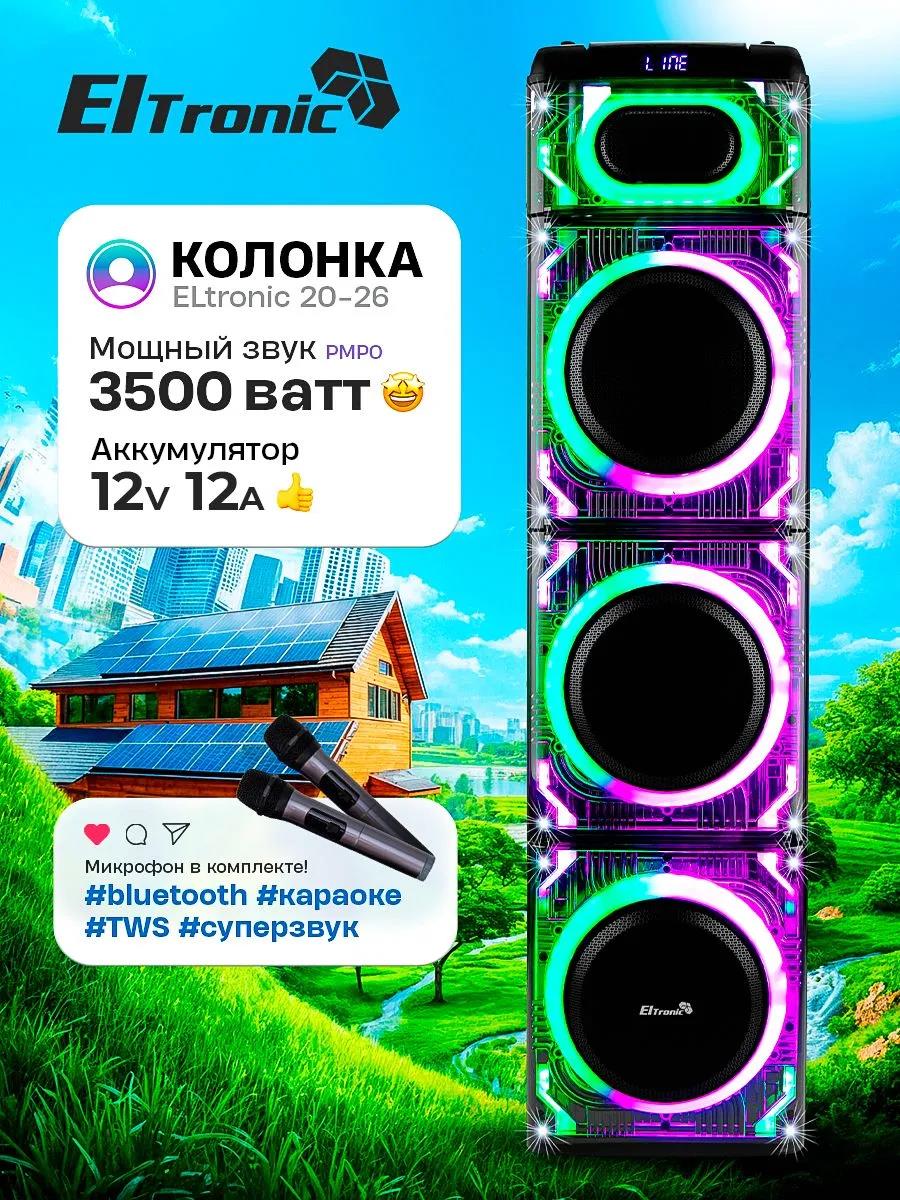 Акустическая колонка ElTRONIC 20-26 CRAZY BOX 3500 - идеальный выбор для ценителей качественного звука! Эта большая колонка, с тремя динамиками диаметром 10 дюймов, призвана удовлетворить потребности даже самых требовательных меломанов. Мощность RMS 350 Ватт и PMPO 3500 Ватт обеспечивают громкий и качественный звук. Колонка работает от встроенного аккумулятора на 12В 12А, обеспечивающего до 5 часов непрерывной работы. Функция TWS позволяет воспроизводить музыку сразу на двух колонках ElTRONIC 20-26 CRAZY BOX 3500 одновременно, создавая объемный звук. С этой акустической колонкой можно наслаждаться музыкой различными способами благодаря разнообразным режимам воспроизведения: через Bluetooth, FM-радио, внешний накопитель или AUX. Колонка заряжается от сети 220V и оснащена разнообразными разъемами: USB, MicroSD, AUX, Jack 6.3 мм (для микрофона или гитары). В комплекте с колонкой идут кабель AUX, беспроводные микрофоны (2 шт), пульт ДУ и инструкция на русском языке. Важные дополнительные функции включают активную LED подсветку динамиков, регулировку звучания микрофонов, дисплей, удобную ручку для переноски и 6-полосный эквалайзер.