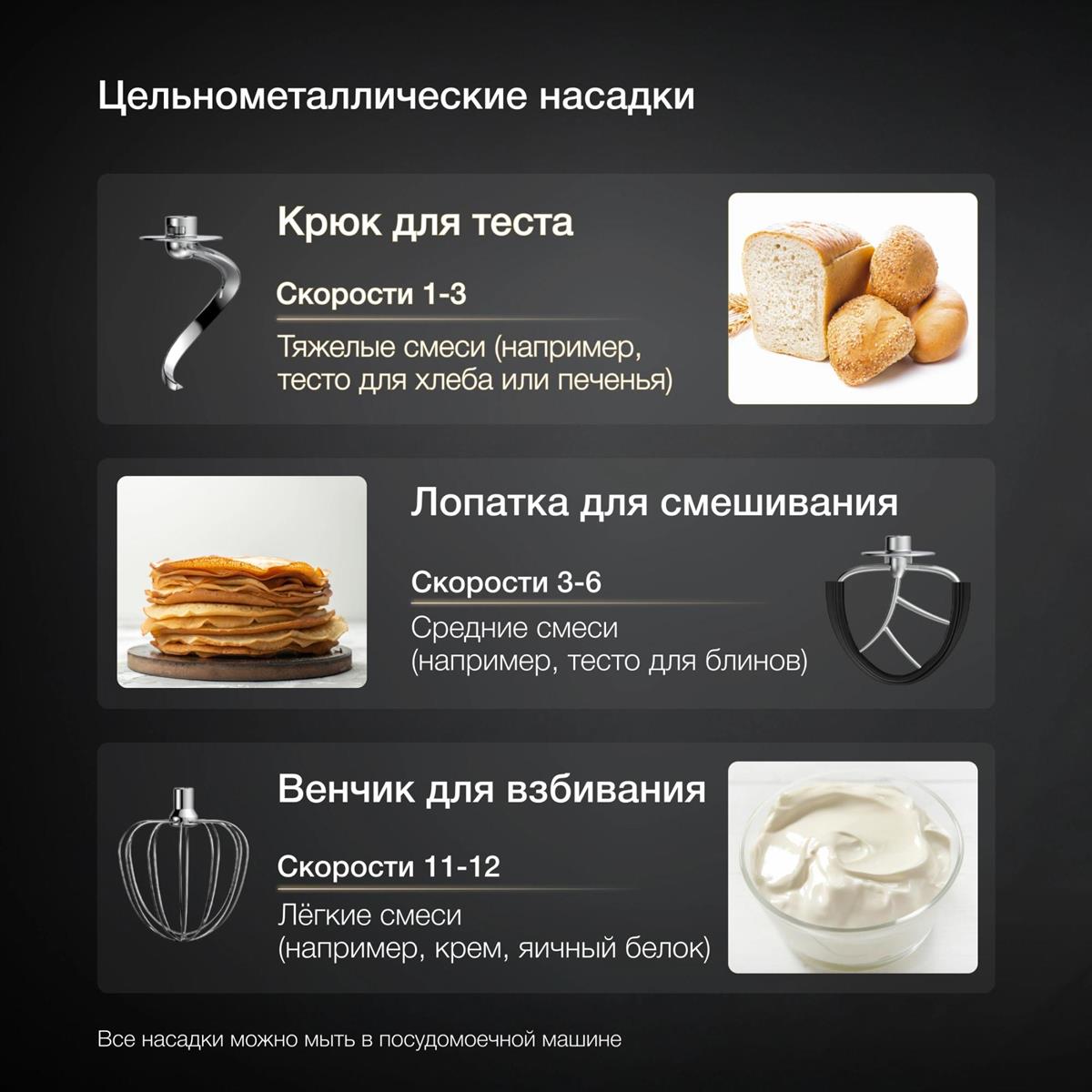 венчик для взбивания, крючки для замешивания теста