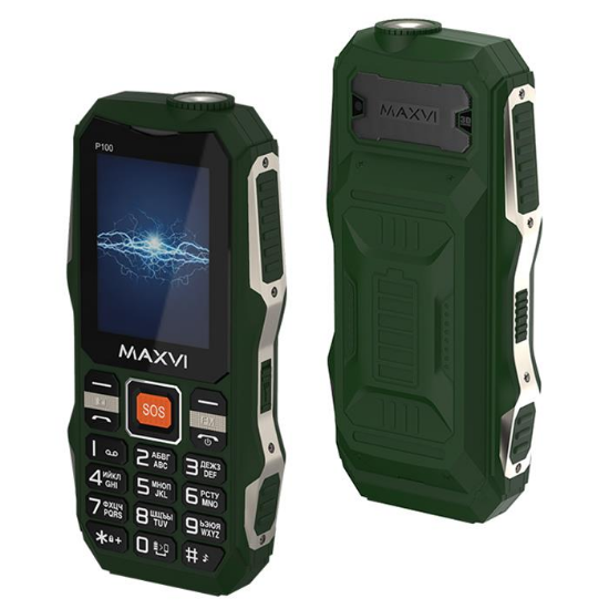Maxvi P100 – функциональный телефон, выполненный из качественных материалов. Модель P100 оснащёна ёмким аккумулятором (5500 mAh) с функцией Powerbank, позволяющей Вам поделиться зарядом энергии с другими гаджетами, а также громким динамиком, возможностью использования двух SIM-карт, ярким фонариком и кнопкой SOS! Maxvi P100 – Ваш незаменимый спутник в сложных условиях.