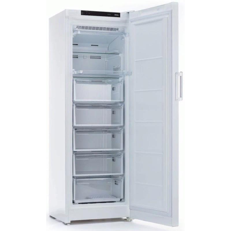 Морозильный шкаф Stinol STZ 175 F позволяет замораживать и хранить большое количество различных продуктов. Габариты устройства составляют 60х175х64 см. Корпус покрыт пластиком белой расцветки. Внутри морозильного шкафа располагается 7 ящиков, 5 из которых выдвижные, а 2 закрываются дверцей. Общий полезный объем морозильного шкафа Stinol STZ 175 F составляет 250 л. Мощность устройства позволяет за сутки замораживать до 12 кг продуктов. Предусмотрена функция суперзаморозки. Благодаря использованию специальной технологии, такой морозильник не требует размораживания. При отключении электричества устройство сохраняет низкую температуру внутри до 17 часов.