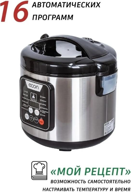 Стильная и функциональная мультиварка с электронным управлением ECO 50MC облегчит труд каждой хозяйки и украсит собой пространство любой кухни. Чаша объемом 5 литров с антипригарным покрытием очень удобна для приготовления самых различных блюд. В мультиварке установлено 12 авто программ и предусмотрено много полезных функций. Вы сможете приготовить суп или бульон, плов, рис или крупы, любую выпечку, пасту или макароны, йогурт, молочную кашу и еще массу различных мясных и овощных блюд с программами варка на пару, тушение, жарка и запекание.Также доступна очень полезная программа Мой рецепт, которая позволяет настроить приготовление блюд в 3 этапа, установив для каждого температуру и время. Общее время приготовления по этой программе может составлять до 16 часов. В комплекте поставляется специальный контейнер для приготовления на пару. В модели также предусмотрена функции поддержания тепла и отложенного на 24 часа старта. Размер 270 на 260 на 285 мм, длина шнура 1 м, мощность 900 Вт.