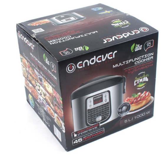 Мультиварка Endever VITA 95 (1000 Вт/5 л /черный, серебристый) - Интернет-магазин ОЛИМП: бытовая техника, электроника, товары для дома и др.