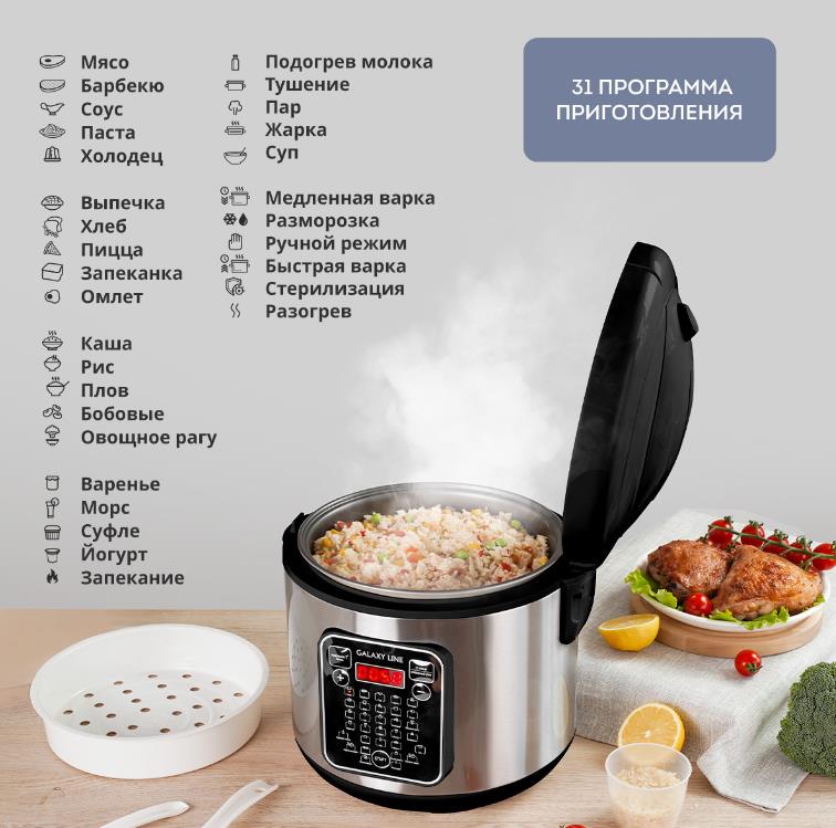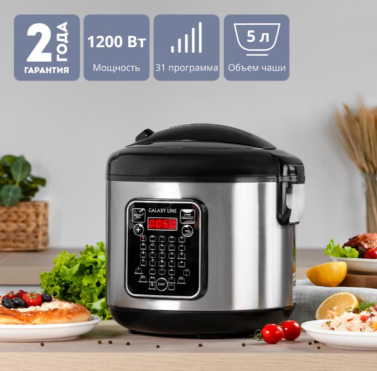 Мультиварка GALAXY LINE GL 2646 (1200 Вт/5 л /черный, серебристый) - Интернет-магазин ОЛИМП: бытовая техника, электроника, товары для дома и др.