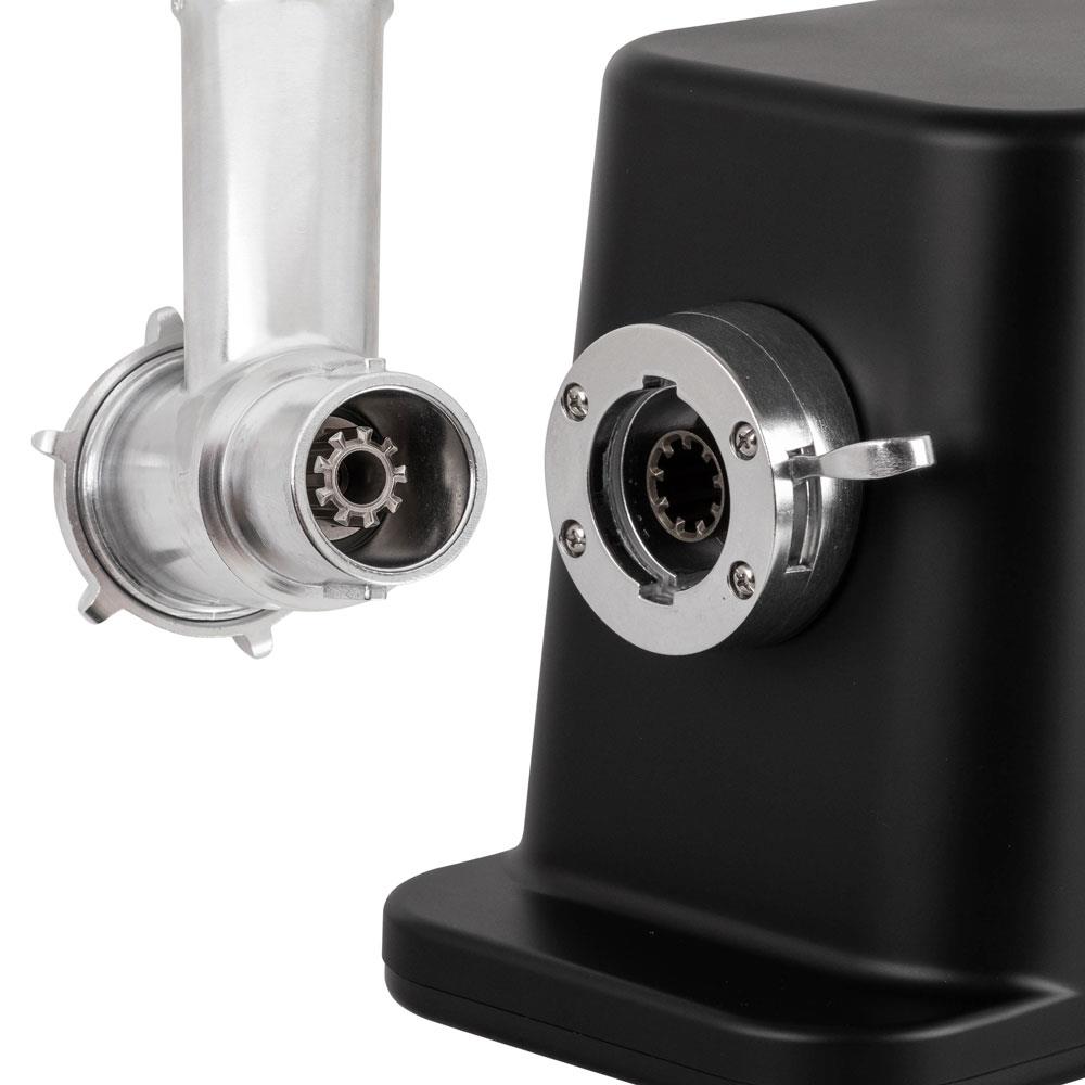 ENDEVER SIGMA-113 может перерабатывать до 3 кг мяса в минуту. Широкое выводящее отверстие 65 мм обеспечивает лучшую проходимость продуктов. А функция реверса позволяет освободить устройство от застрявшего мяса, жил и беспрепятственно продолжить работу. Мясорубка оснащена тремя решетками с отверстиями: двумя с диаметром 4 мм и 7 мм и одной с 10 отверстиями. Так, вы сможете регулировать помол фарша. С этой мясорубкой вы сможете порадовать близких вкусными домашними кеббе и колбасами — в комплект мясорубки входят специальные насадки для этого. Наличие разнообразных решеток дает возможность не ограничиваться изготовлением только лишь мясного фарша. С их помощью вы сможете перерабатывать также овощи, ягоды и другие продукты. Надежную работу устройства при сильных нагрузках обеспечивает защита от перегрева, кованый стальной нож и металлический загрузочный лоток. Нескользящие прорезиненные ножки позволяют мясорубке быть устойчивой при работе. Мясорубка имеет оптимальный уровень шума ≤85 дБ и средний вес — около 5 кг вместе с аксессуарами.