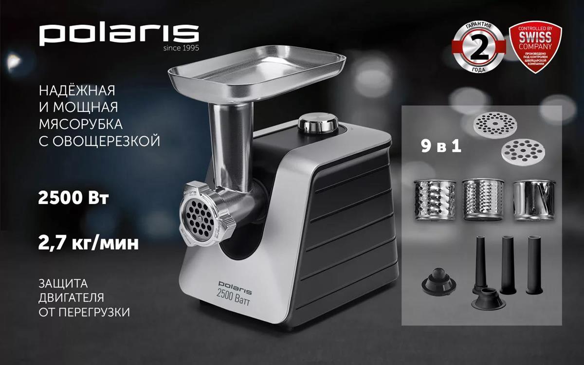 Мясорубка Polaris PMG2561 (2500 Вт /2,7 кг/мин/серебристый, черный) - Интернет-магазин ОЛИМП: бытовая техника, электроника, товары для дома и др.