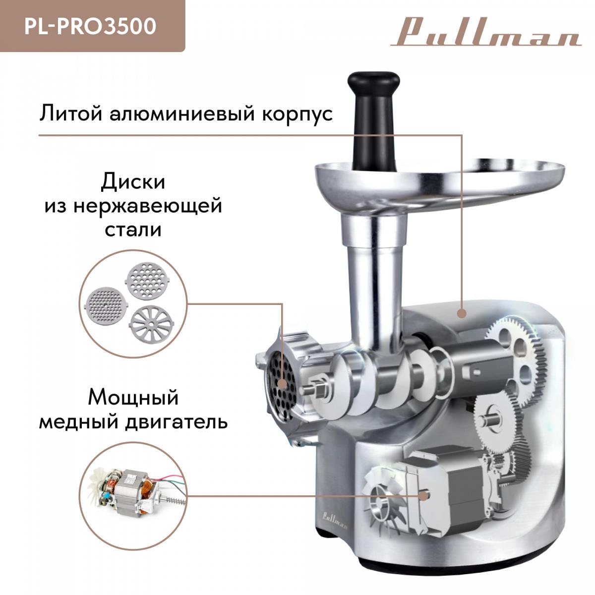 Мясорубка Pullman PL-PRO3500 (3500 Вт /3,5 кг/мин/серебристый) - Интернет-магазин ОЛИМП: бытовая техника, электроника, товары для дома и др.
