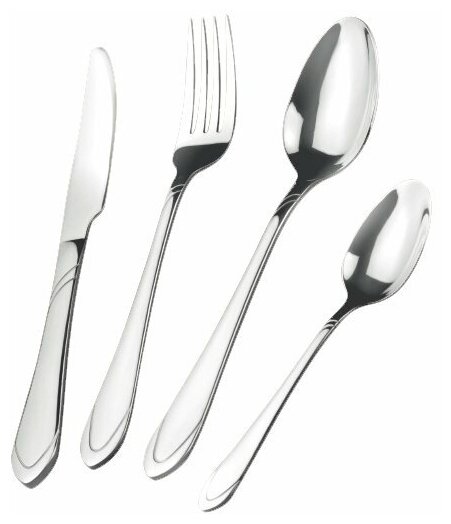 В набор входит: нож столовый - 6 шт, ложка столовая - 6шт, вилка столовая - 6шт, ложка чайная - 6шт. Классический дизайн, широкие края рукоятки, доступная цена набора. Столовые приборы SIRIUS - то, каким должен быть традиционный столовый набор. Однако, толщина в 3 мм – это уже не просто предмет для повседневного использования, но еще стиль и качество. Столовые приборы LARA изготовлены из стали с 18-процентным содержанием хрома и имеют зеркальную полировку класса "А". Особое внимание уделено остроте зубьев вилки. Труднодоступные места между зубьями, в которых могут скапливаться остатки пищи, отполированы вручную так, чтобы сделать поверхность ровной и гладкой и повысить гигиеничность изделий. Глубина столовой ложки не менее 7 мм, и это обеспечивает оптимальную вместительность.