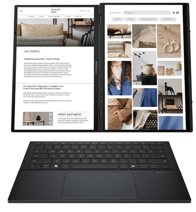 два дисплея с идентичными характеристиками, отсоединяемая Bluetooth-клавиатура, откидная подставка, стилус ASUS Pen SA203H-MPP2.0