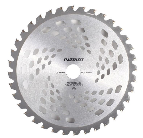 Предназначен для скашивания сучковатых кустарников и тонких стволов деревьев. Используется только на триммерах средней и высокой мощности. Диаметр внешний/внутренний, мм 230/25,4. Количество лопастей, шт 36.