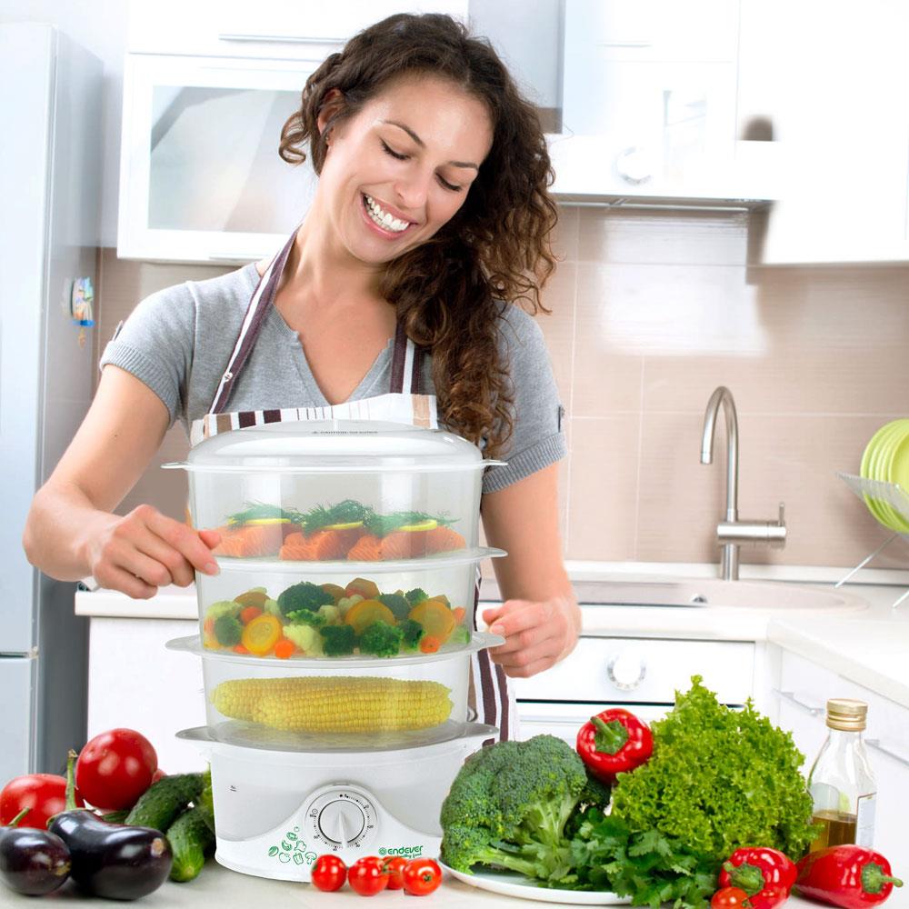 Пароварка Endever Vita-177 предусмотрена для приготовления на пару разнообразных продуктов и блюд для поддержания здорового образа жизни. Сохраняет питательные вещества овощей, мяса, птицы и рыбы. Самый деликатный способ тепловой обработки обеспечивает натуральный вкус и аромат Ваших продуктов. Пароварка оснащена тремя ярусами с общим объемом 9 литров. А благодаря мощности 1000 Вт, Вы сможете приготовить большое количество блюд за считанные минуты. Корпус пароварки выполнен из жаропрочного BIO-пластика, что делает данную модель безопасной в использовании. Пароварка Endever Vita-177 обладает механическим таймером на 60 минут с автоотключением.