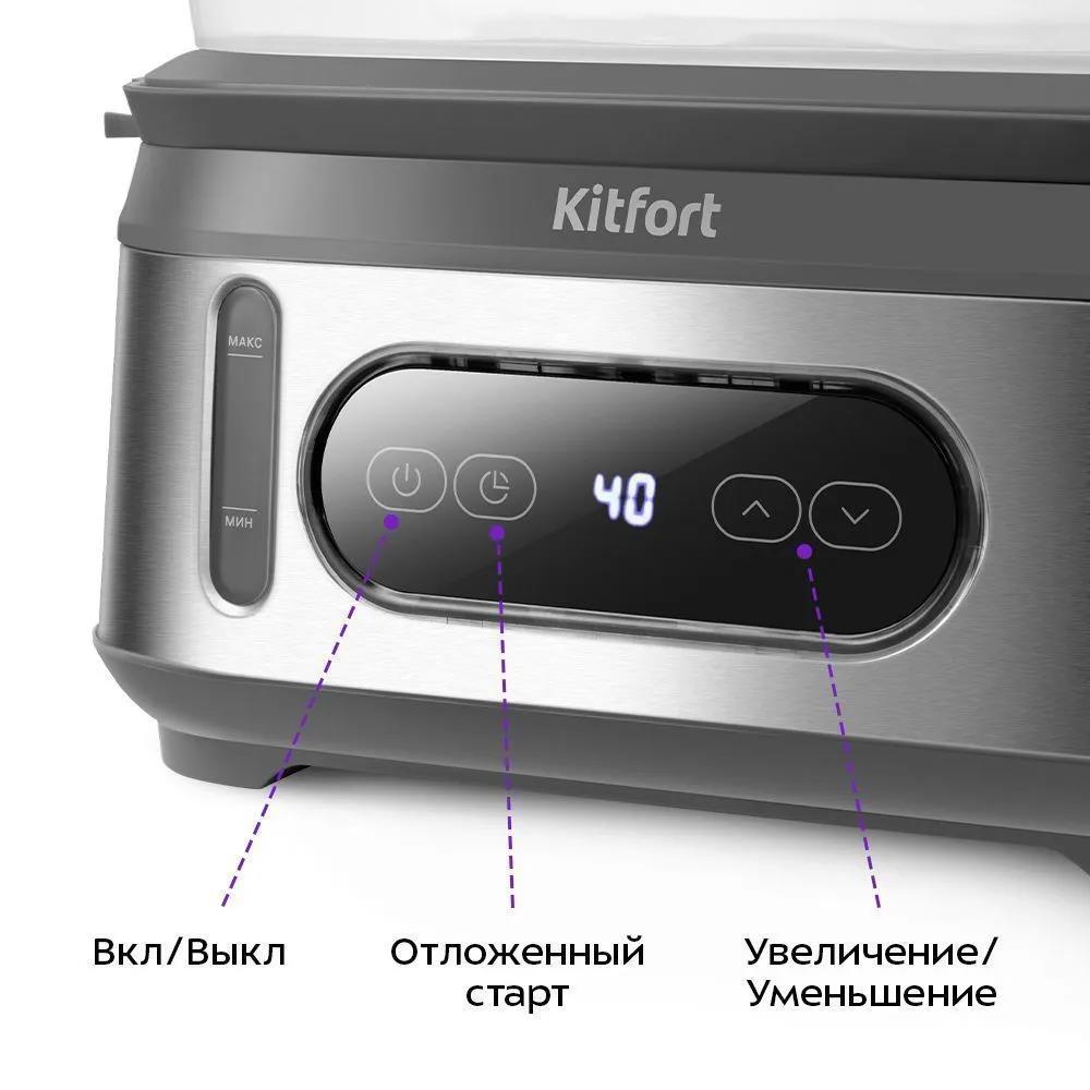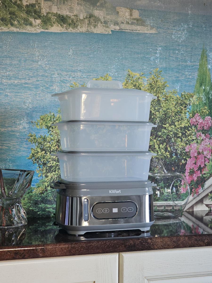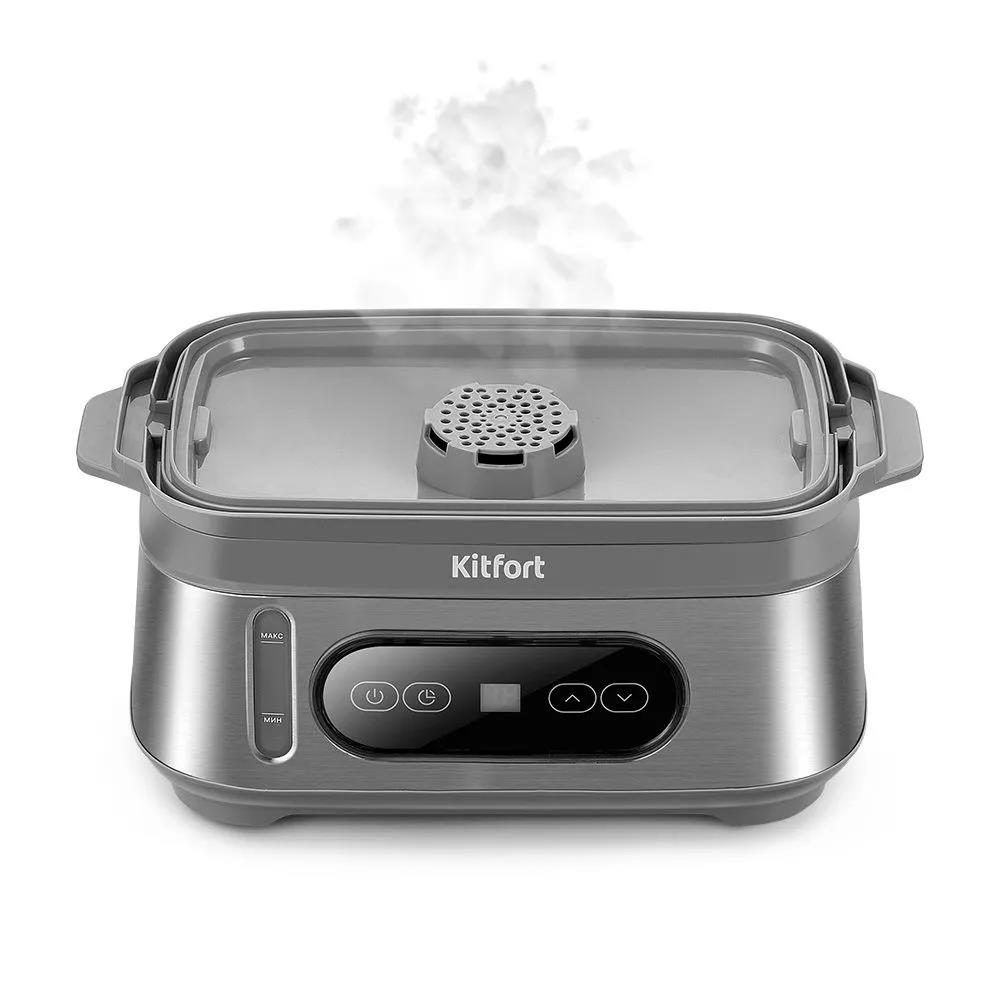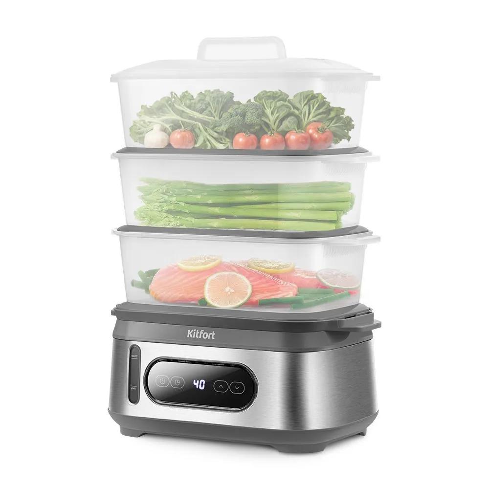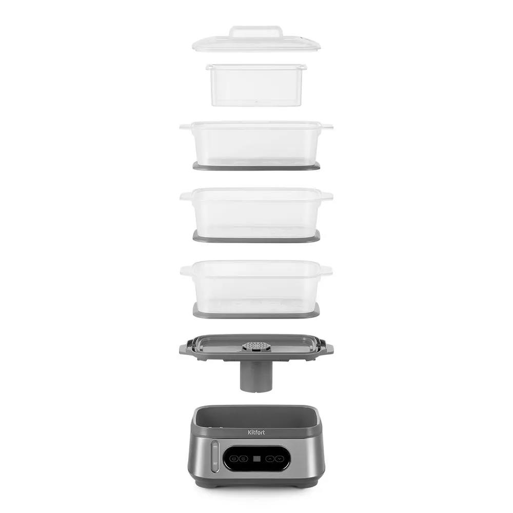 Пароварка Kitfort КТ-6280 3ярус. 1050Вт (серый, серебристый)