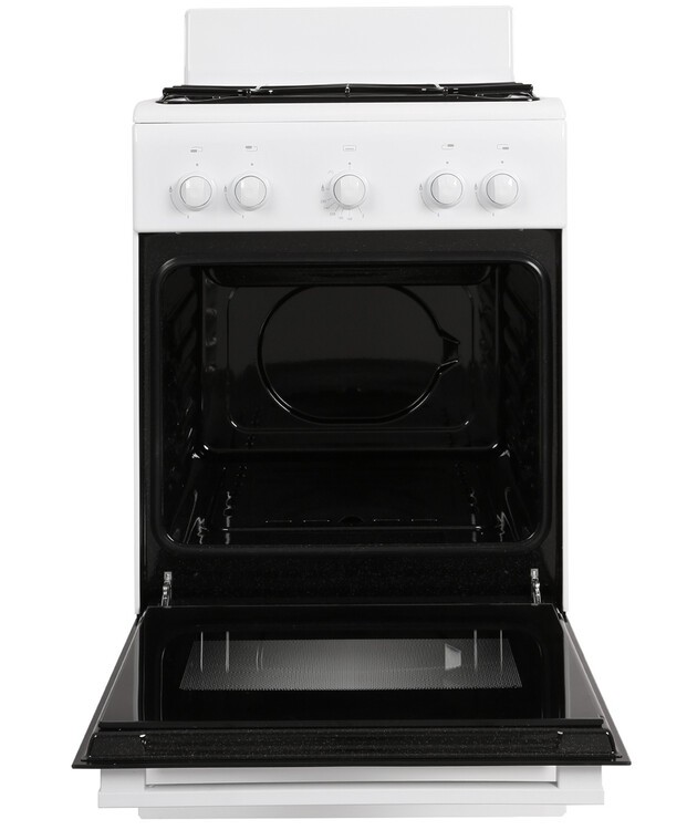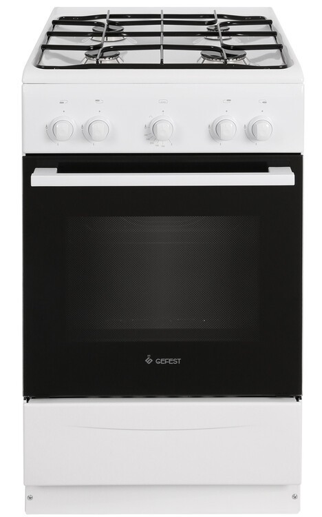 GEFEST 5100 0117 — это отдельно стоящая четырехконфорочная газовая плита белого цвета с газовой духовкой объемом 52 литра. Модель относится к бюджетному сегменту, отличается компактными размерами и классическим дизайном.