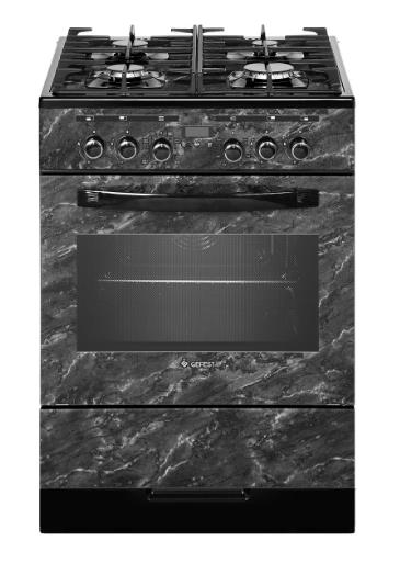 Газоэлектрическая плита ПГЭ 6502-04 0053. Цвет: черный с рисунком "мрамор". Варочная поверхность: стеклянная.