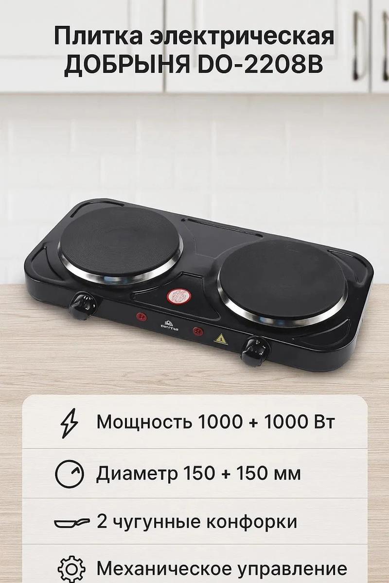 Плита настольная Добрыня DO-2208B (электрическая, чугун, черный) - Интернет-магазин ОЛИМП: бытовая техника, электроника, товары для дома и др.
