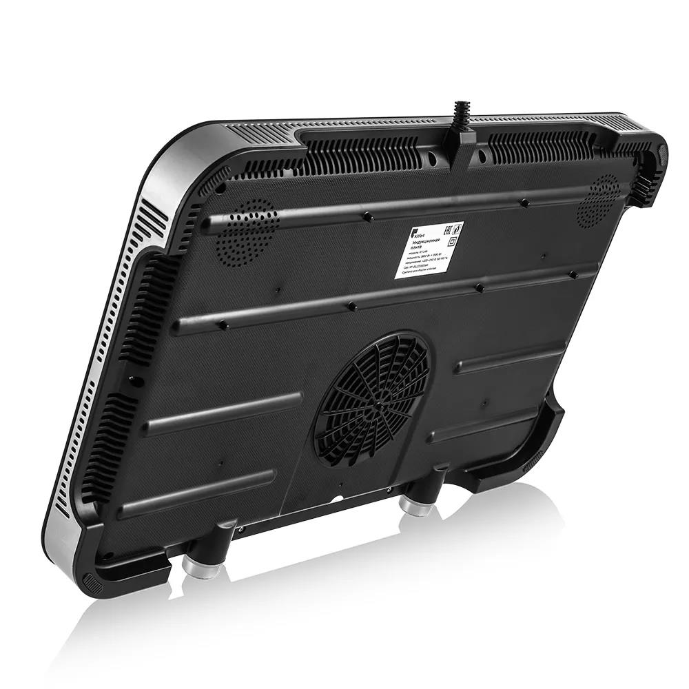 Управление плитой осуществляется двумя регуляторами. Установите нагрев до 1300 Вт и 1800 Вт, температуру до 200°C и 240°C и таймер до 24 часов. Программа «Молоко» предназначена для подогрева молока, а «Буст» – увеличит нагрев до максимума на 30 секунд! На обратной стороне плиты встроен вентилятор, который способствует быстрому охлаждению устройства во время интенсивной работы и после её завершения. Плита оборудована противоскользящими ножками, придающими ей устойчивое положение на поверхности.