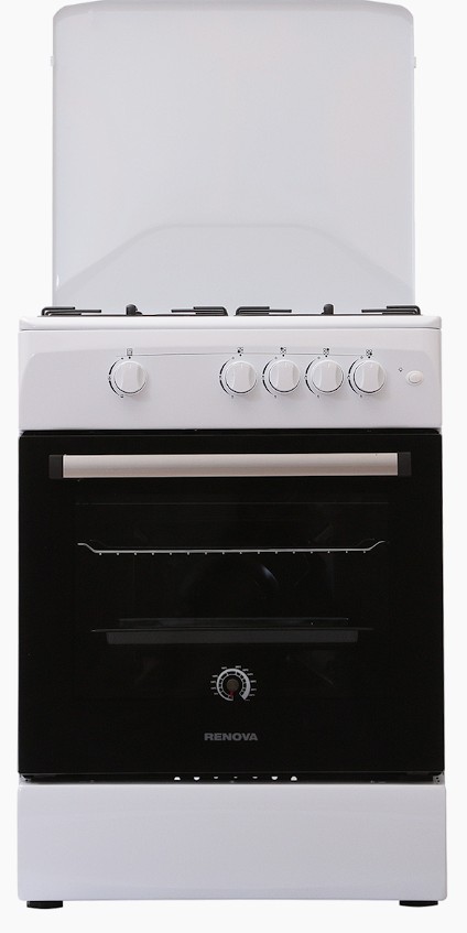 RENOVA SG6G-W-TR — это отдельностоящая газовая плита белого цвета с четырьмя конфорками и газовой духовкой объемом 70 литров. Модель отличается наличием электроподжига, встроенного в поворотные ручки, и системы газ-контроля для безопасной работы духового шкафа.