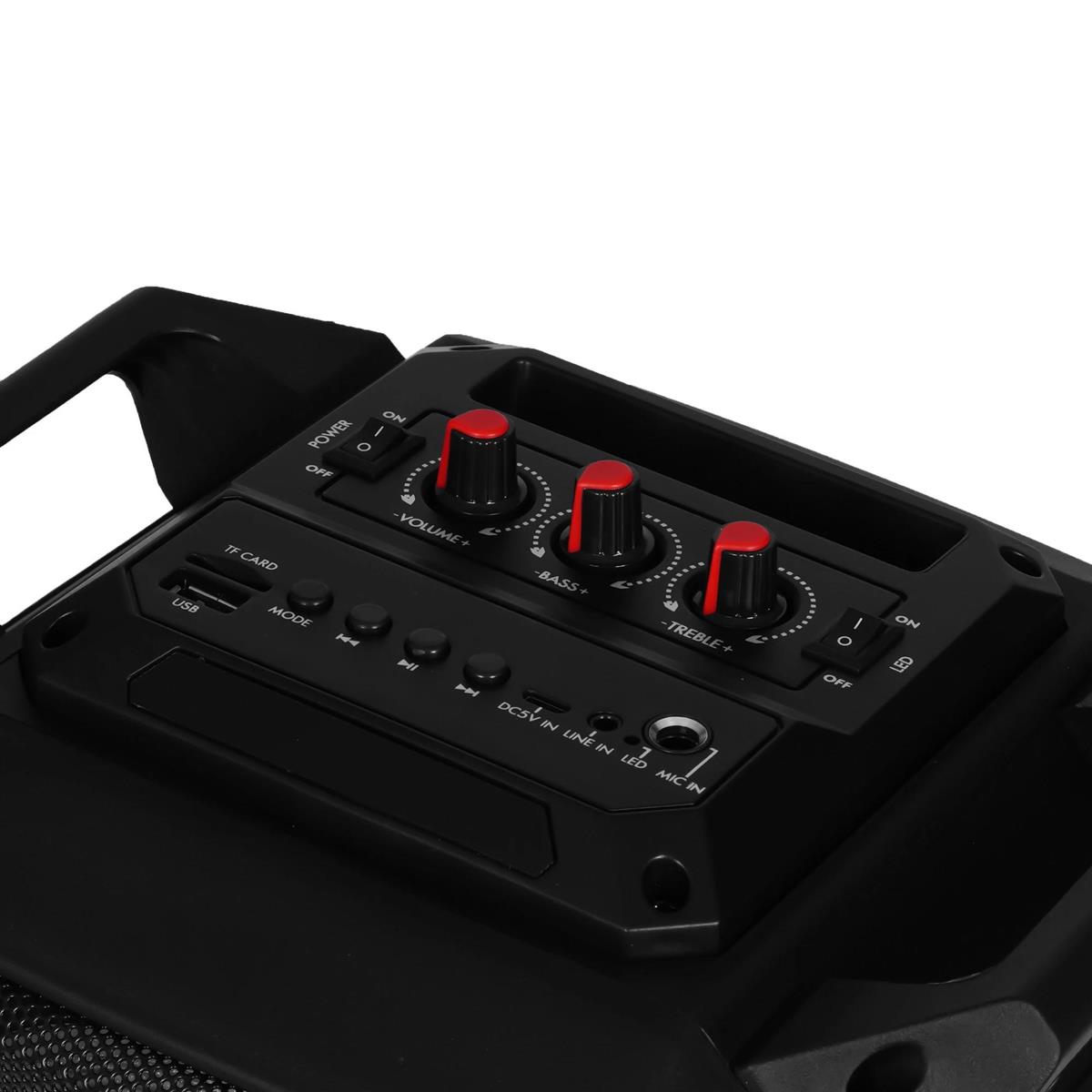 Черная портативная аудиосистема Dialog Oscar AO-11 подключается к устройствам через Bluetooth, а также имеет разъем для micro USB и вход для микрофона, который прилагается в комплекте. С помощью кабеля jack 3.5 mm – XLR вы сможете подключить к системе караоке. Дополнительно предусмотрен тюнер FM-радио, интерфейс USB Type A для флэшки и многоцветная подсветка корпуса. Компактная аудиосистема Dialog Oscar AO-11 имеет также слоты для размещения карт памяти типа microSD или microSDHC с максимальным объемом до 32 ГБ. Колонка поддерживает практически все виды форматы аудиофайлов - FLAC, MP3, WAV, WMA. Два встроенных динамика с со стереосистемой гарантируют чистый звук в диапазоне 30-18000 Гц. Питается аудиосистема от аккумулятора емкостью 3600 мА*ч.