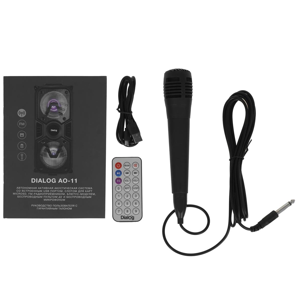 Портативная акустика Dialog Oscar AO-11 1.0, 26W RMS, Караоке c микрофоном, BT+FM+USB+SD+LED ( черный)