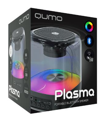 Портативная акустика Qumo Plasma ВТ 0082 5 ВТ объемное звучание RGb подсветка (5 Вт черный)