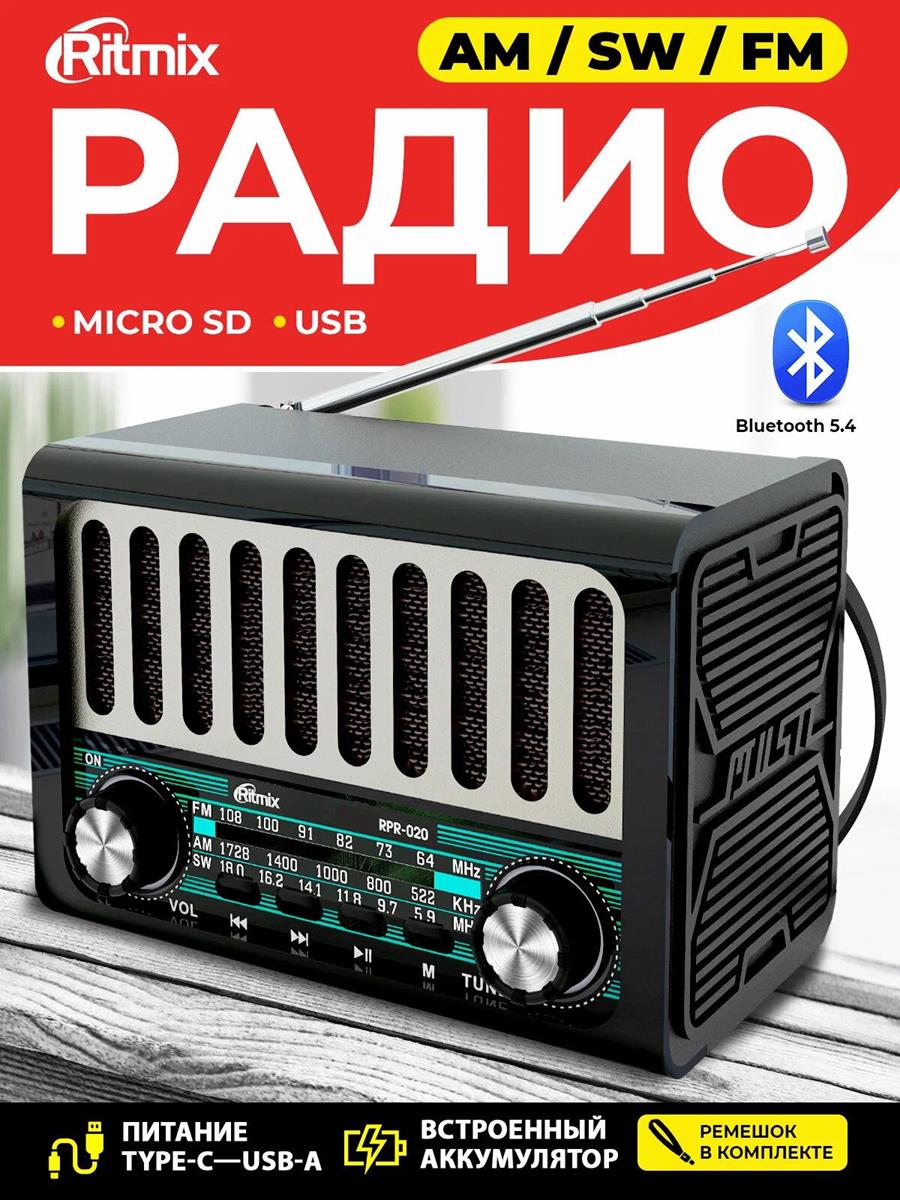 Радиоприемник Ritmix RPR-020 черный - Интернет-магазин ОЛИМП: бытовая техника, электроника, товары для дома и др.