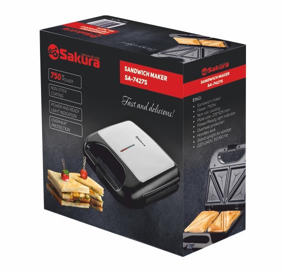 Сэндвичница Sakura SA-7427S (750 Вт /4 порции/серебристый, черный)
