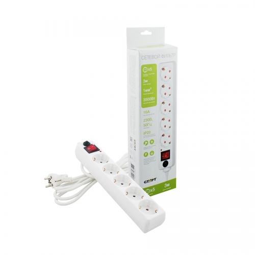 Сетевой фильтр СТАРТ С/УД-Ф SP 5Х3 5Р3М 3 м, белый