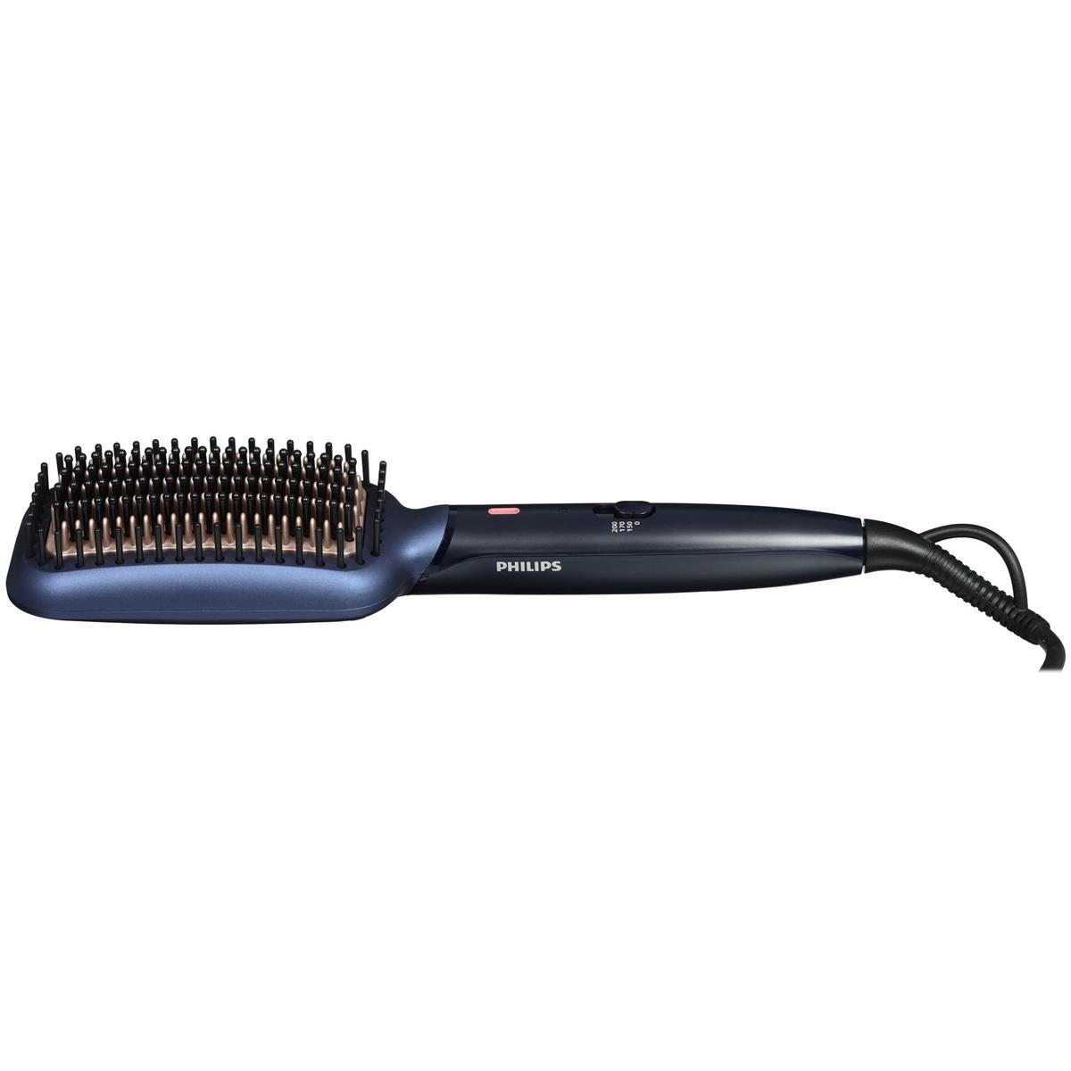Расческа-выпрямитель Philips BHH885/00 способна нагреваться от 160 до 200 °C. За счет керамико-турмалинового покрытия это не принесет вреда волосам. Прибор работает в 3 режимах нагрева. Выпрямитель имеет 247 тройных щетинок. Ширина рабочей поверхности составляет 6 см – это позволяет захватывать и выпрямлять большие пряди волос. Петелька для подвешивания и шнур длиной 1.8 м отвечают за удобство использования Philips BHH885/00. В случае перегрева расческа отключится автоматически.