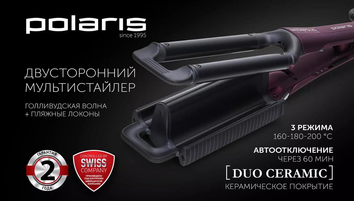 Щипцы для волос Polaris PHS-6011 КT фиолетовый, 95 вт, керамика, создание разных локонов (95 Вт /200 °C/керамическое) - Интернет-магазин ОЛИМП: бытовая техника, электроника, товары для дома и др.