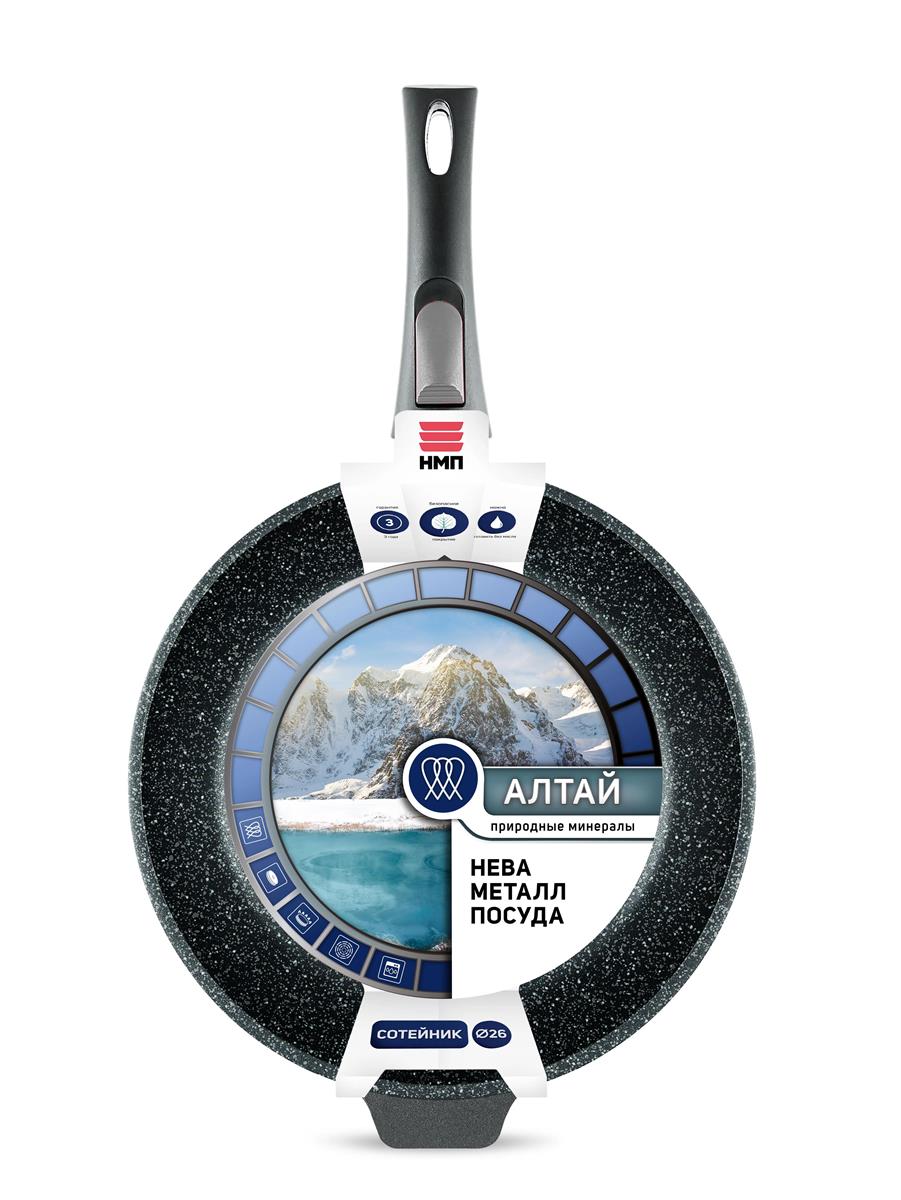 Сотейник НЕВА МЕТАЛЛ ПОСУДА 271326i 26см высокий "Природные минералы" линия "Алтай" индукционная, с/р (3,86 л )