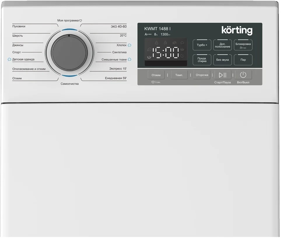 Стиральная машина Korting KWMT 1488 I — это идеальное сочетание элегантного дизайна и передовых технологий. Классический белый цвет корпуса и современный дизайн делают ее великолепным дополнением к любому интерьеру. Вертикальная загрузка белья обеспечивает легкий и быстрый доступ к барабану, а максимальная загрузка для стирки составляет 8 кг, что идеально подходит для средних и больших семей. Страна-производитель, КНР, гарантирует высокое качество и надежность стиральной машины. Машина обладает широким выбором программ стирки (16 режимов), что позволяет выбрать наиболее подходящий режим для любого типа ткани. Среди них есть программы для стирки хлопка, синтетики, смешанных тканей, шерсти, джинсов, спортивной одежды, пуховиков и детского белья. Мощность подключения составляет 1.9 кВт, что позволяет машине эффективно работать даже при низком напряжении. Модель оснащена инверторным двигателем, что обеспечивает более тихую и долговечную работу. Класс энергопотребления A+++ говорит о высокой энергоэффективности модели, а класс стирки A и класс отжима B обеспечивают отличные результаты стирки и отжима.