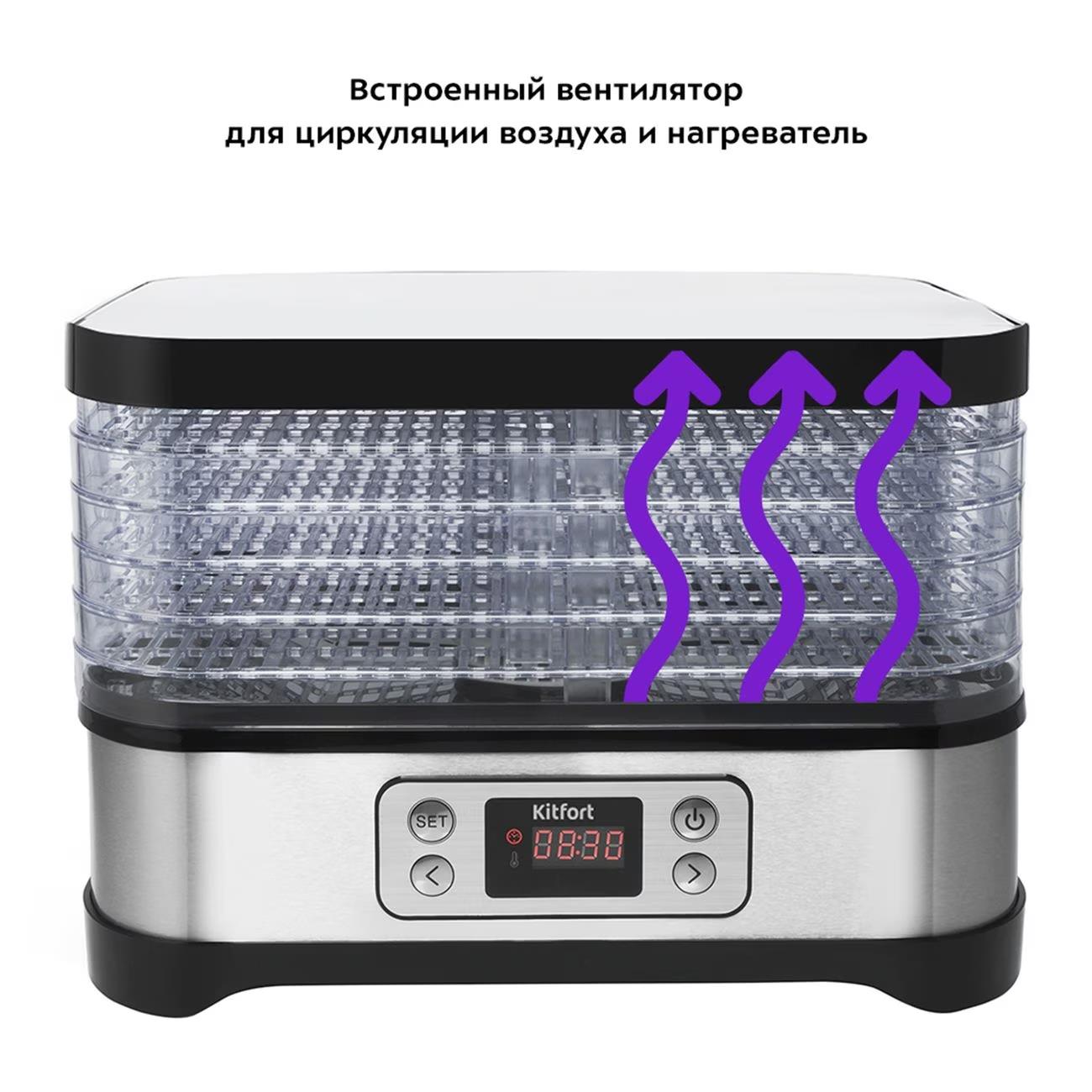 Сушилка для овощей Kitfort КТ-1903 (поддонов 5 шт, 250 Вт , черный, серебристый)