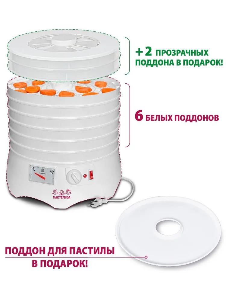 Сушилка для овощей Мастерица EFD-0602VM 6 белых поддонов + 2 прозрачных поддона + поддон д/пастилы в подарок, D 31.6 см (поддонов 8 шт, 280 Вт , белый)