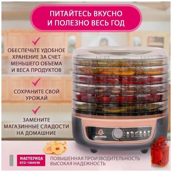 Сушилка для овощей Мастерица EFD-1004VM 5 тонир.поддонов + 2 поддона д/пастилы в подарок D33 (поддонов 5 шт, 600 Вт , серый, бежевый)