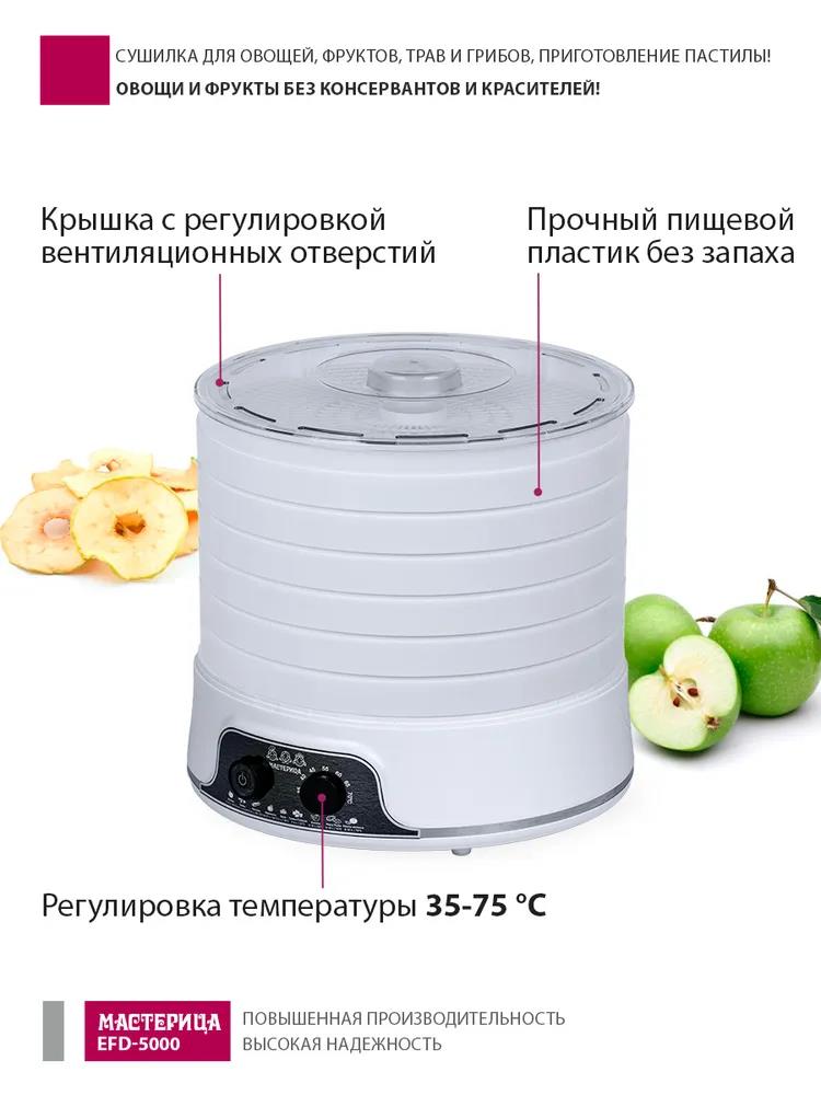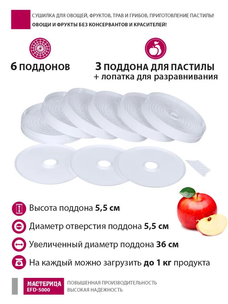 Сушилка для овощей Мастерица EFD-5000, 6 белых поддонов + 3 поддона д/пастилы 500Вт, увеличенный D поддона 36 см (поддонов 6 шт, 500 Вт , белый) - Интернет-магазин ОЛИМП: бытовая техника, электроника, товары для дома и др.