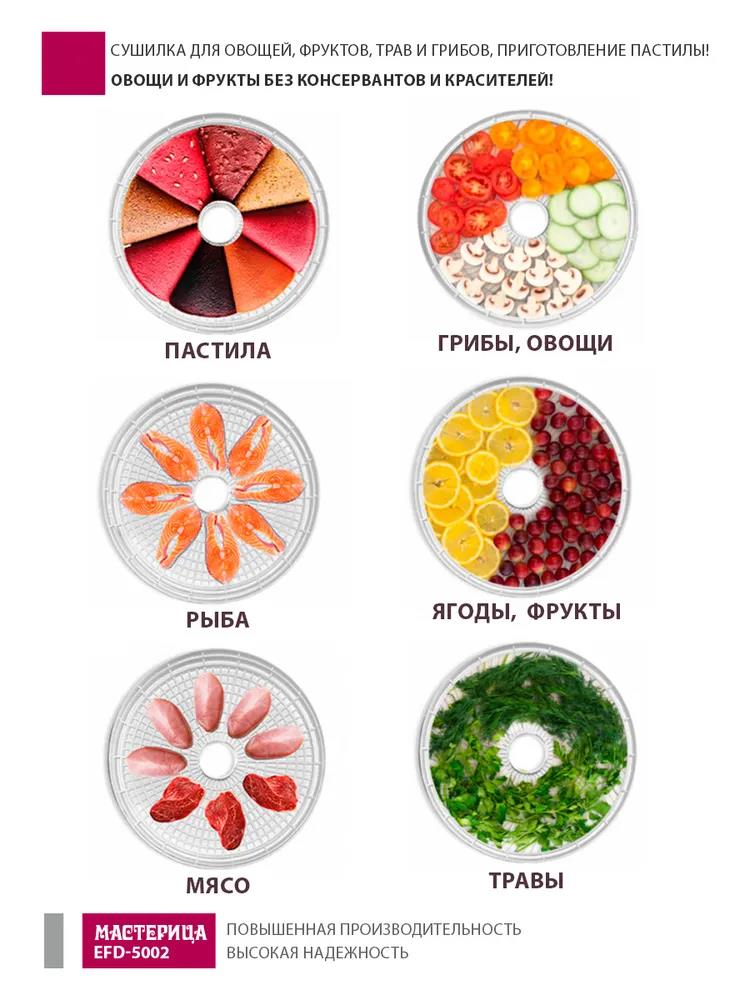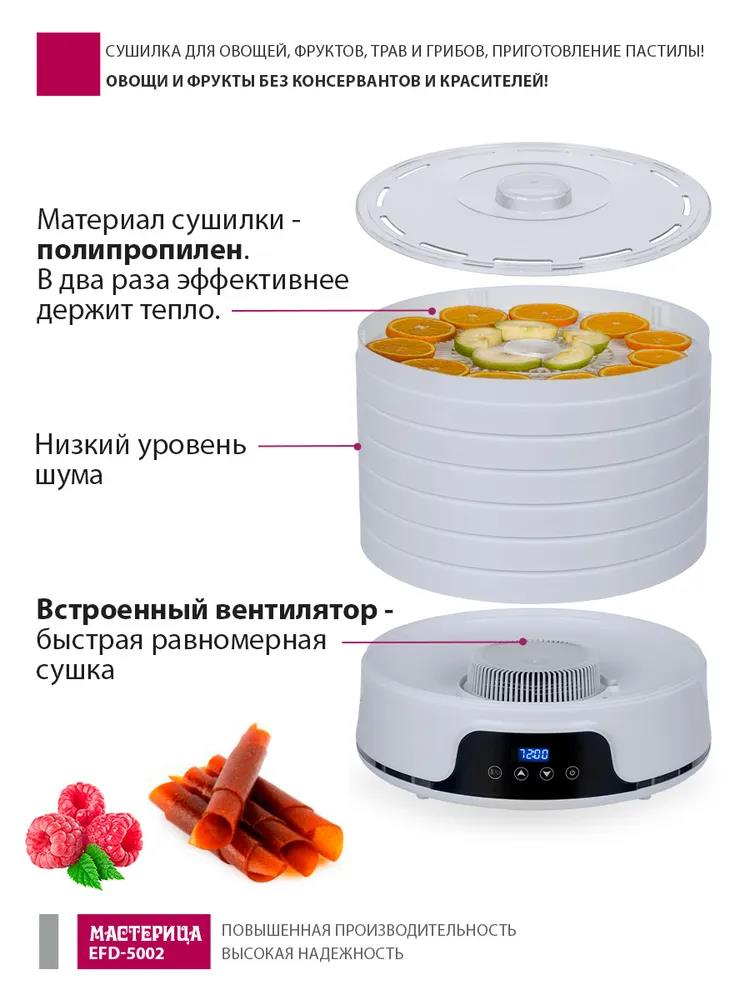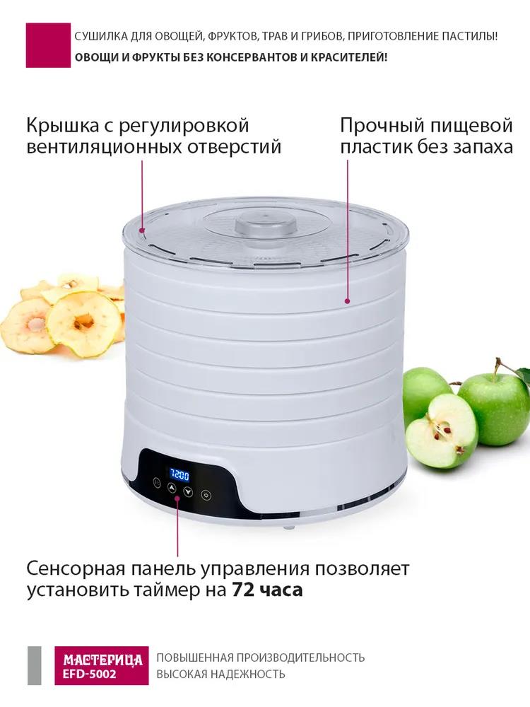 Сушилка для овощей Мастерица EFD-5002, 6 бел. поддонов + 3 поддона д/пастилы 500Вт, увелич. D поддона 36 см (поддонов 6 шт, 500 Вт , белый) - Интернет-магазин ОЛИМП: бытовая техника, электроника, товары для дома и др.