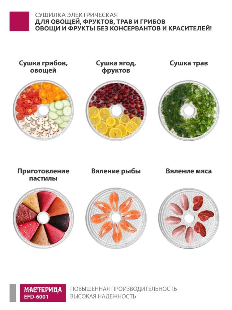 Сушилка для овощей Мастерица EFD-6001, 5 белых поддонов + 2 поддона д/пастилы 300Вт, D 31.6 см (поддонов 5 шт, 300 Вт , белый) - Интернет-магазин ОЛИМП: бытовая техника, электроника, товары для дома и др.
