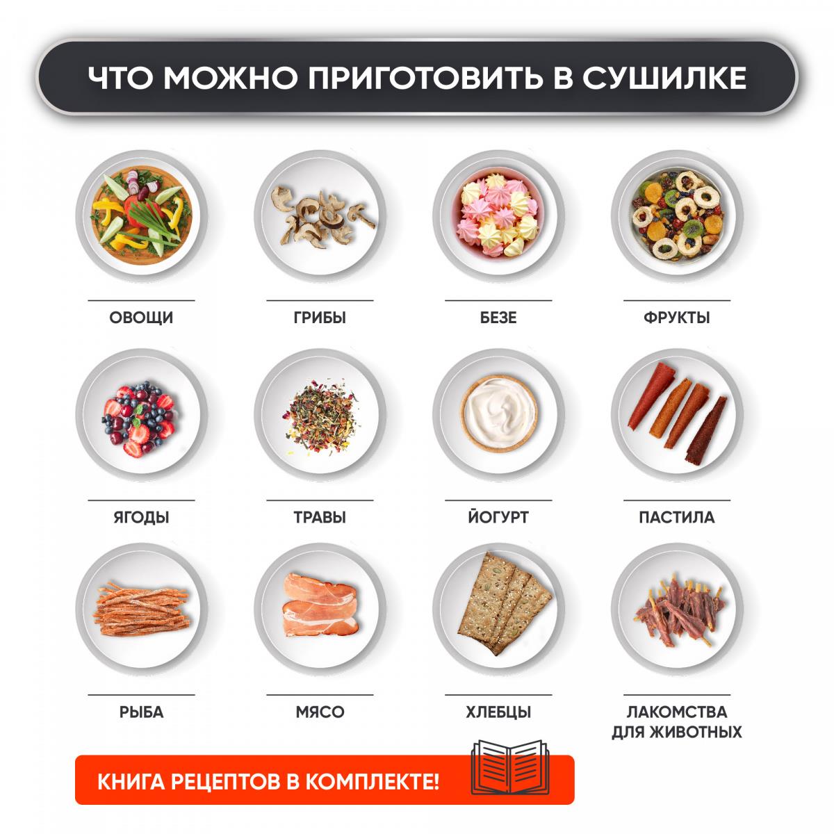 Сушилка для овощей и фруктов Pullman PL-1110. Двойные стенки из нержавеющей стали. Быстрая конвективная сушка. 10 уровней, 21 поддонов в комплекте. Таймер на 48 часов! Равномерный горизонтальный обдув - не требуется менять поддоны местами! 10 поддонов из нержавеющей стали, 7 поддонов для пастилы, 3 сетки для мелких продуктов, 1 глубокий лоток для сока и крошек. Подсветка внутри камеры. Нагрев от 30 до 90 градусов. Книга рецептов в комплекте! Мощность 800 Вт. Электронное управление с обратным отсчетом. Звуковой сигнал об окончании времени по таймеру. Большой яркий экран. Длина электрического шнура 120 см. Отдельная кнопка для включения и отключения подачи электричества в прибор. Размер металлического поддона 30*28 см, размер поддона для пастилы 25*25 см, размер сетки для мелких продуктов 25*25 см. Размер внутри камеры – 35,1*26,5*35 см. Высота прибора - 43 см, глубина - 39 см, ширина 34 см. Вес прибора 11,30 кг. Упаковка: двойная коробка из пятислойного гофрокартона. Размер внеш. кор. 51*46,5*42cм.Вес 13,35кг