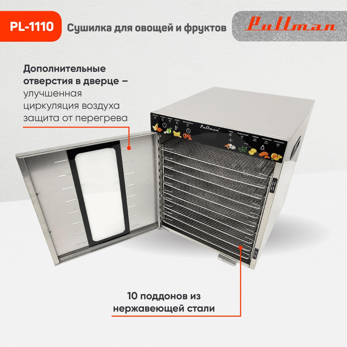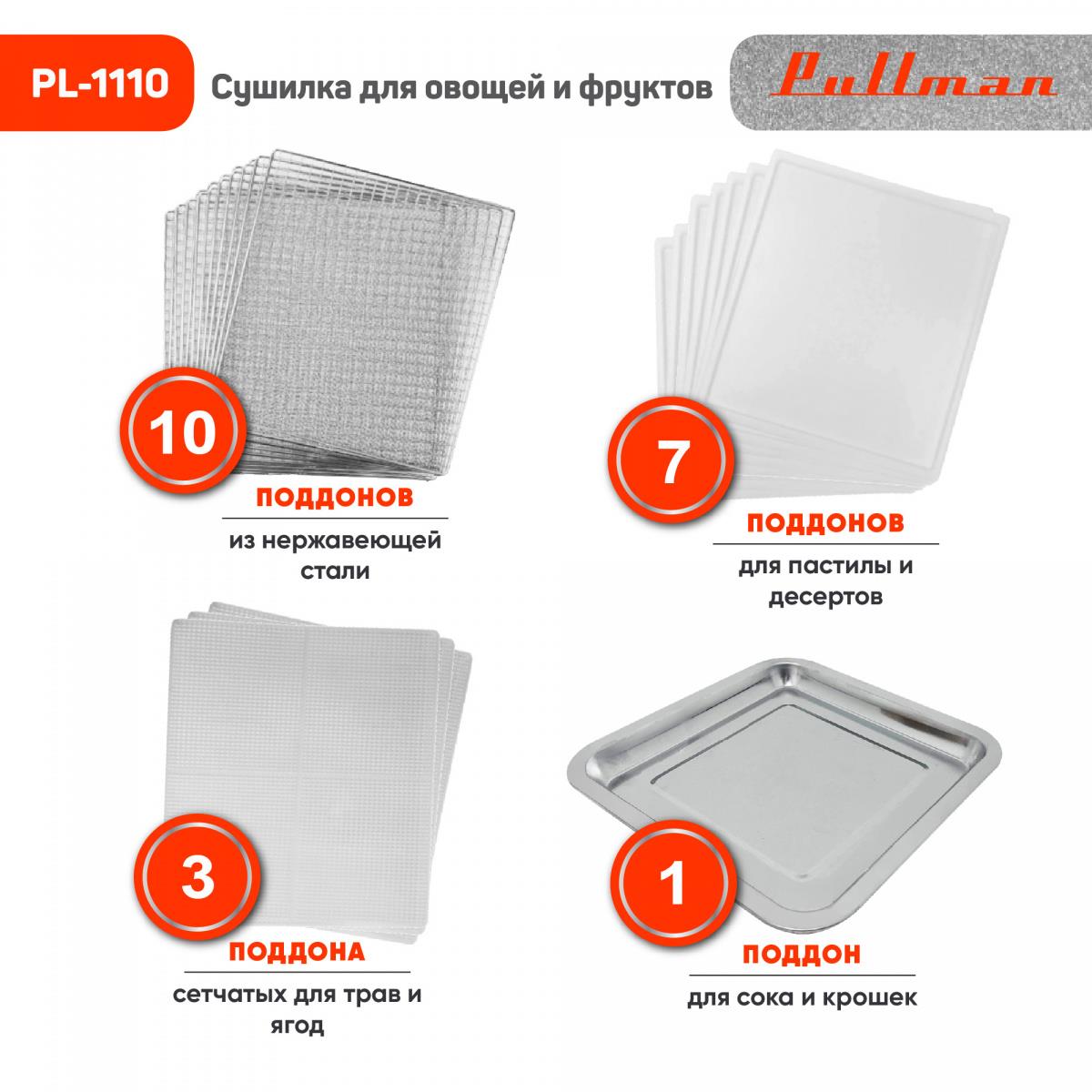 Сушилка для овощей Pullman PL-1110, 10 уровней, 21 поддонов, 800 Вт (поддонов 21 шт, 800 Вт , металлик) - Интернет-магазин ОЛИМП: бытовая техника, электроника, товары для дома и др.