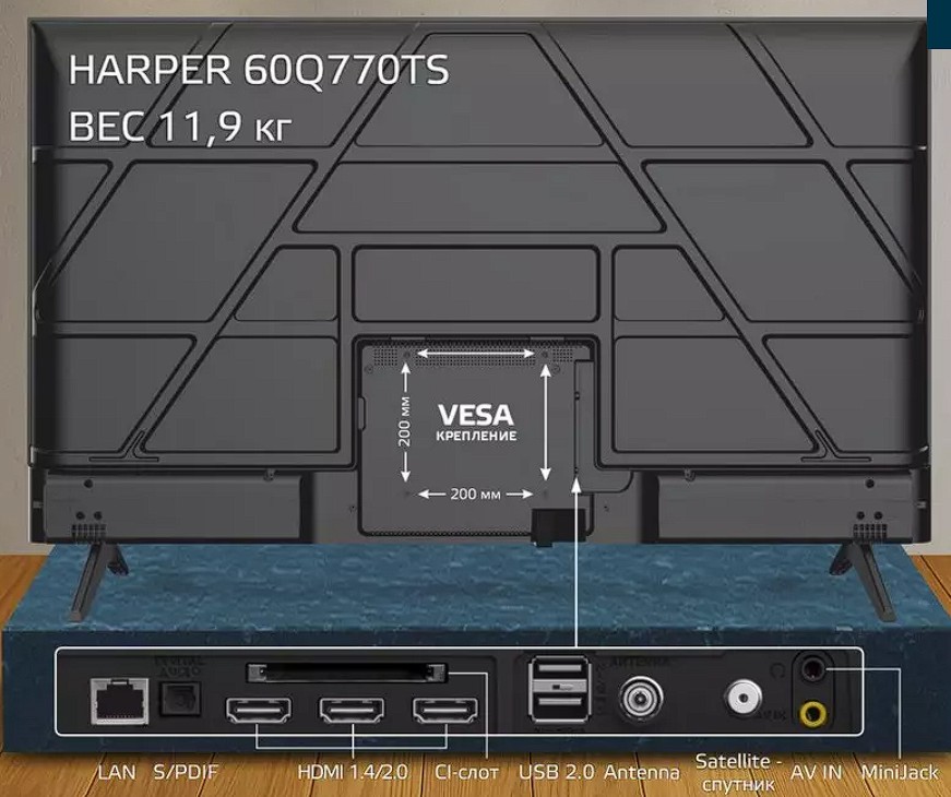 HARPER 60Q770TS — это 60-дюймовый 4K-телевизор с технологией QLED, выпущенный в 2025 году. Модель позиционируется как современный медиацентр с качественной цветопередачей и расширенными возможностями для игр.