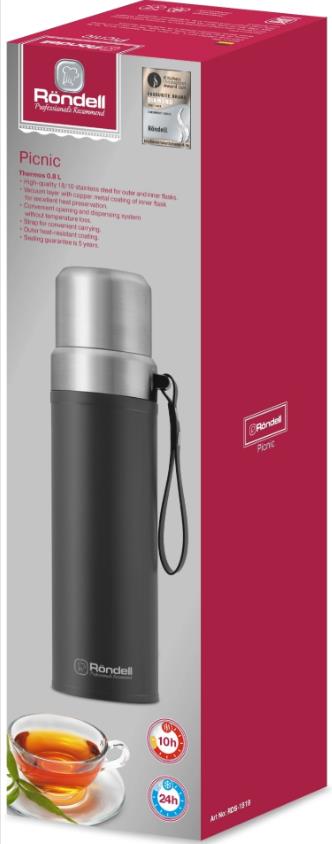Термос Rondell Picnic RDS-1819 для напитков 0.8л. серый карт. коробка 0,8 л - Интернет-магазин ОЛИМП: бытовая техника, электроника, товары для дома и др.