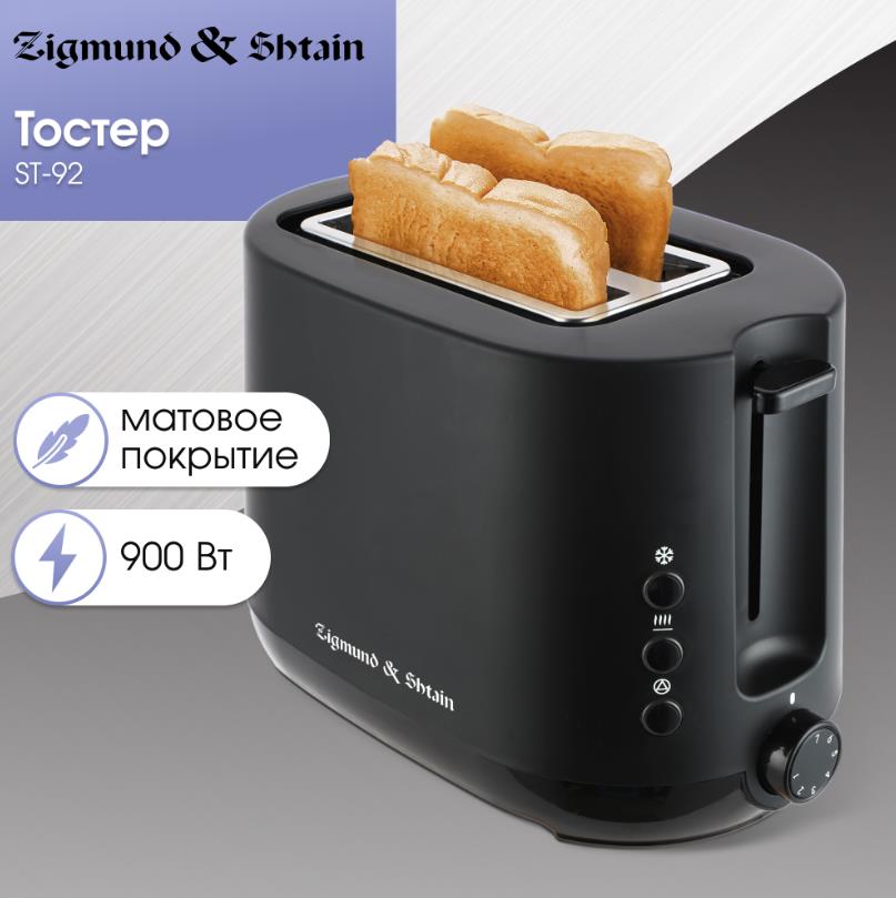 Тостер Zigmund & Shtain Kuchen-Meister ST-92 (900 Вт черный матовый) - Интернет-магазин ОЛИМП: бытовая техника, электроника, товары для дома и др.
