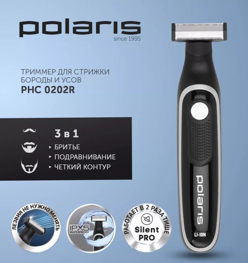 Триммер бороды и усов Polaris PHC 0202R, серебристый, черный - Интернет-магазин ОЛИМП: бытовая техника, электроника, товары для дома и др.
