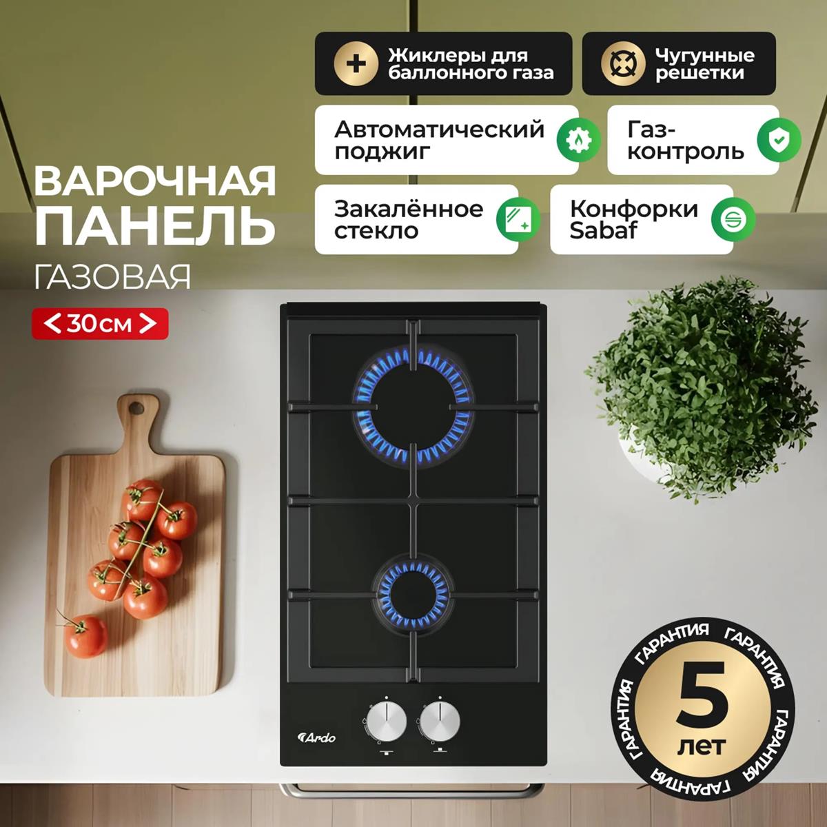 Варочная панель ARDO GH32GCB2 - это стильное и функциональное решение для вашей кухни. Эта компактная модель с двумя газовыми конфорками, выполненная из прочного закаленного стекла, идеально подойдет для небольших кухонь или в качестве дополнительной рабочей поверхности. Модель оснащена удобным механическим управлением с поворотными регуляторами, позволяющими точно контролировать пламя. Для вашей безопасности предусмотрены функции автоподжига и газ-контроль, которые гарантируют безопасное использование. Чугунные решетки обеспечивают устойчивость посуды, а защита от детей предотвратит случайное включение.