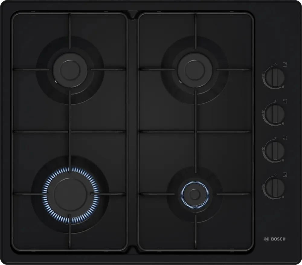 Газовая варочная панель Bosch PBP6C6K80Q продумана для практичных пользователей: четыре конфорки распределены так, чтобы обеспечить разнообразные режимы приготовления — мощная передняя левая зона 3 кВт подходит для быстрого кипячения и жарки, а задняя левая и задняя правая по 1.75 кВт удобны для тушения и поддержания температуры; передняя правая 1 кВт идеальна для деликатной термообработки и нагрева. Суммарная мощность устройств достигает 7.5 кВт, что обеспечивает быструю готовность и стабильную работу при одновременном использовании нескольких секций. Для безопасной эксплуатации предусмотрена термоэлектрическая защита газ-контроля, автоматически перекрывающая подачу топлива в случае погасания пламени, а автоматический электроподжиг интегрирован в поворотные органы управления, обеспечивая мгновенное воспламенение без применения сторонних средств.